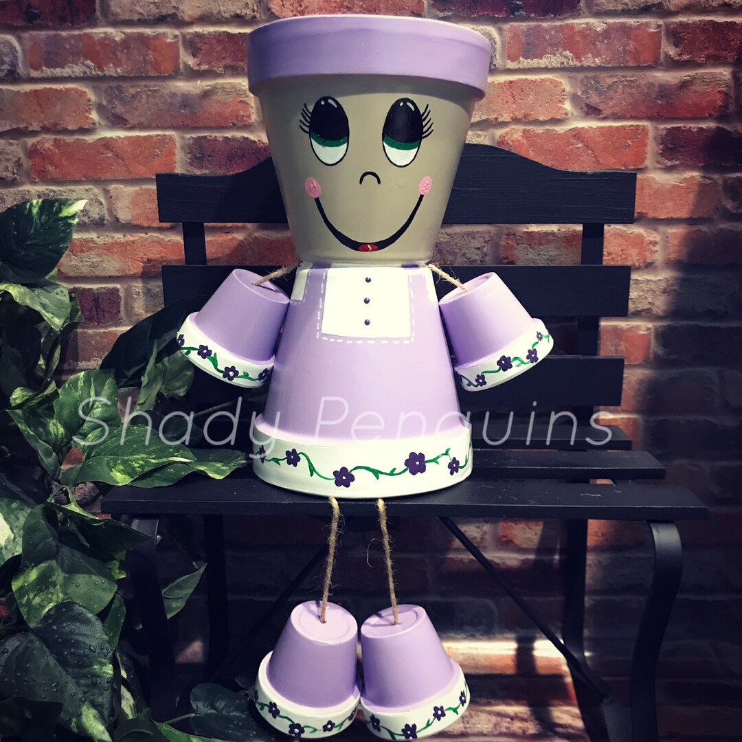 12 Purple Flower Pot Girl With Flowers Clay Pot People Etsy